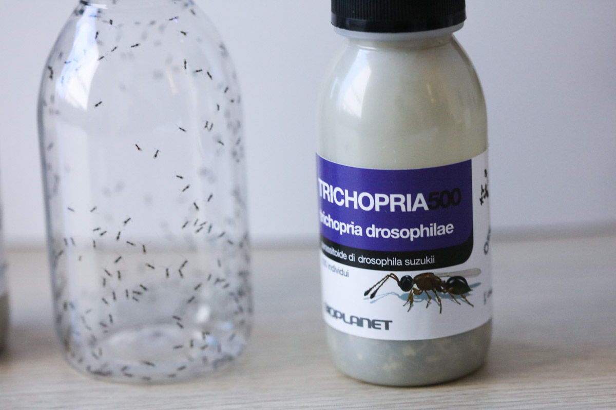 Większość drapieżnych organizmów firma Bioplanet namnaża samodzielnie, co realizowane jest w tunelach foliowych oraz specjalnych fitotronach z kontrolowanymi warunkami. Cały czas poszerza swoje portfolio , a najnowszym w nim produktem jest Trichopria drosophilae błonkówka będąca parazytoidem poczwarek Drosophila suzukii. Jak informował Andrea Sala, ten pożyteczny owad pojawił się naturalnie już w niektórych europejskich krajach wraz z pojawieniem się D. suzukii. W 2013 roku rozpoczęto badania nad komercyjnym rozmnażaniem tej błonkówki w celu jej wprowadzania na uprawy zagrożone przez szkodnika. Okazuje się to być możliwe i przynosi dość dobre rezultaty. Pierwsze takie próby podjęte zostały we Włoszech w tym roku, a w 2017 produkt zawierający Trichopria drosophilae trafi do sprzedaży. Ma to szczególne znaczenie w sytuacji gdy brakuje wystarczająco skutecznych rozwiązań chemicznych do zwalczania D. suzukii, który to szkodnik jest szczególnie groźny dla owoców jagodowych oraz czereśni. W 2016 roku, w niektórych północnych regionach Włoch szkody spowodowane przez D. suzukii w uprawach czereśni sięgały 100%.