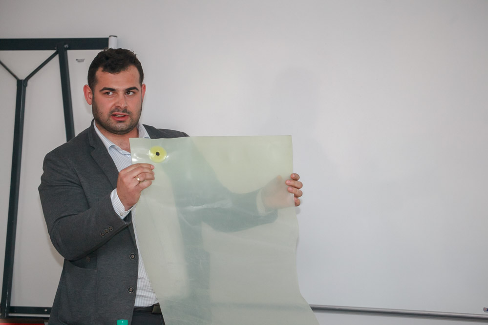Karol Czerwiak z firmy Geo-Polska przedstawił jakie są możliwości mechanicznego zabezpieczenia upraw borówki wysokiej przed muszka plamoskrzydłą. Biorąc pod uwagę wielkość muszki, siatka chroniąca rośliny powinna uniemożliwiać przedostawanie się owadów w otoczenia roślin, ważna jest też wytrzymałość siatki na warunki pogodowe, jak wiatr, słońce i opady. Polecane są do tego celu dwa rodzaje siatek GeoInsect 20 o średnicy oczek 0,75×0,66 mm, gramaturze 20 g/m2 wykonana z poliamidu i 8%. Siatka GonInsect 110 ma przekrój oczek 0,97×0,72 mm, cechuje się przy tym już znacznie większa gramaturą 110 g/m2. Przedstawił również ofertę folii firmy Daios Plastics do montażu daszków na plantacjach borówki. Osłony w postaci foliowych daszków mogą zapewnić ochronę przed deszczem, bezpośrednim nasłonecznieniem, ale również gradem i przymrozkami. W przypadku folii przyspieszającej dojrzewanie można uzyskać zbiór owoców nawet o 20 dni wcześniejszy względem upraw nieosłanianych.