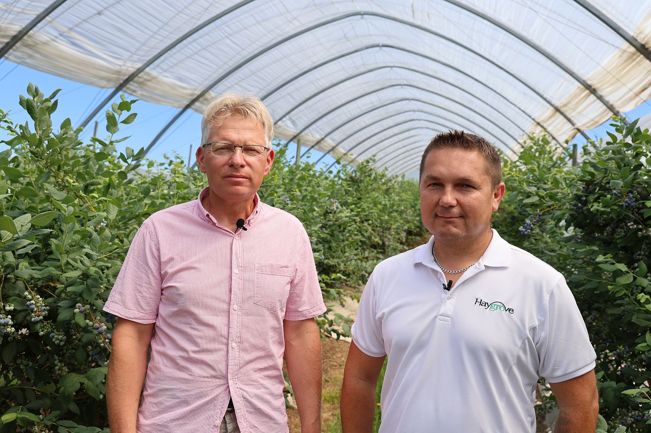 Pierwsze tunele w gospodarstwie dr. Pawła Krawca dedykowane uprawie borówki stanęły w 2021 roku. Od tego czasu minęło już pięć sezonów, a właściciel ma sporo praktycznych obserwacji i danych porównawczych. Jak podkreślili dr Krawiec i Janusz Góra, przedstawiciel firmy Haygrove, najnowszy – piąty sezon – dostarczył kolejnych dowodów na to, że tunele skutecznie chronią borówki przed niekorzystnymi warunkami atmosferycznymi.