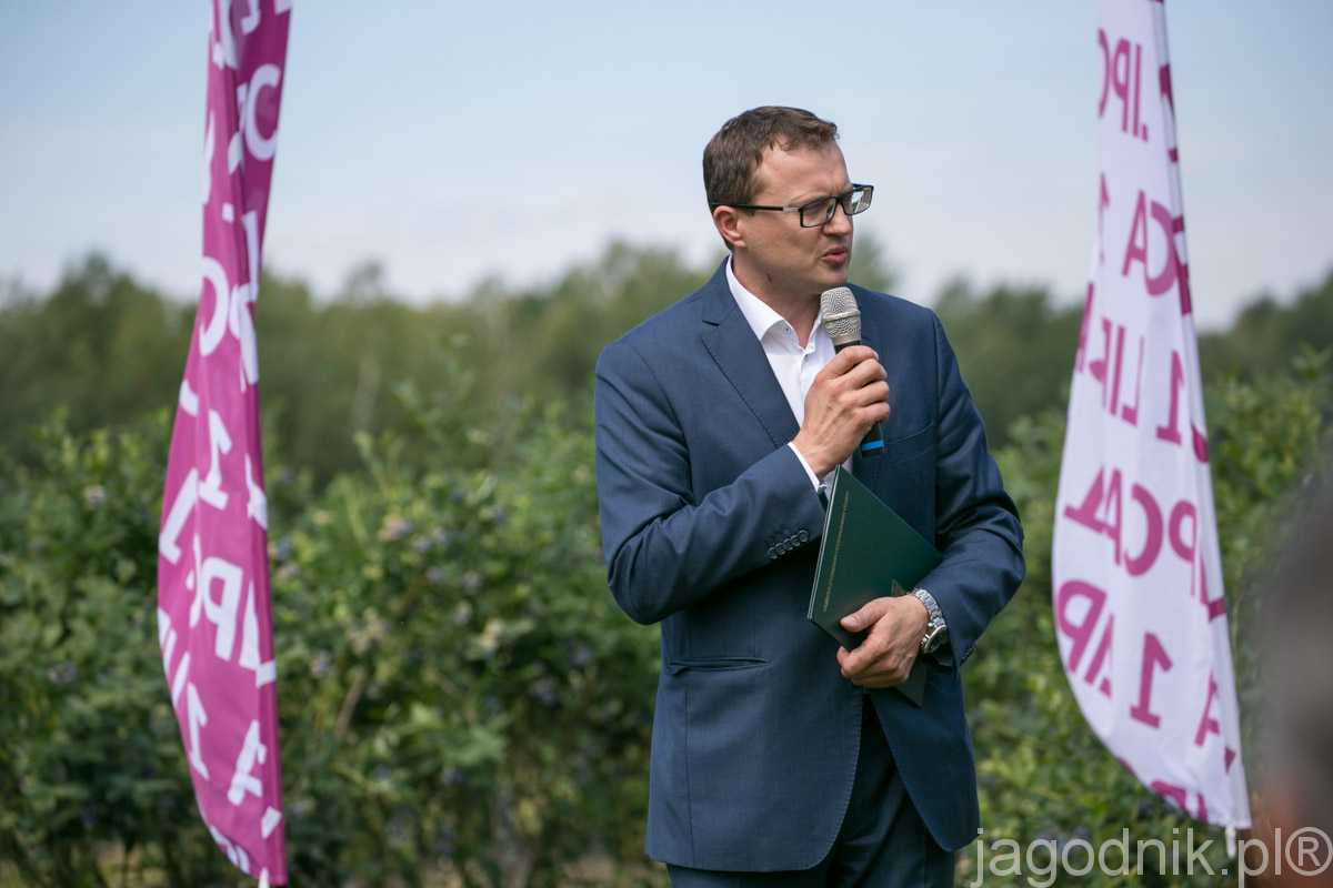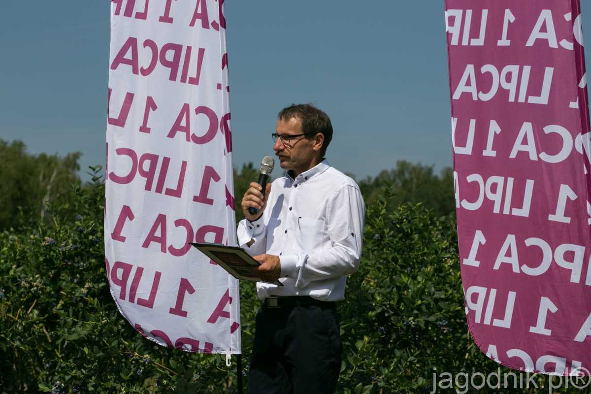 3 miesiące przygotowań zaowocowały 30 czerwca spotkaniem inaugurującym rozpoczęciem borówkowego sezonu. W tym dniu na plantacji Mateusza i Karoliny Jabłońskich w Błoniu pierwsze borówki trafiły do konsumentów. 100 lat temu borówkę udomowili Amerykanie, ale to my Polacy osiągnęliśmy sukces w uprawie tego gatunku. To Polska jest największym w Europie producentem borówki. Ale nie tylko wielkość produkcji jest ważna, ale także jakość. To nasze borówki zbierane są ręcznie i produkowane w zgodzie z naturą – mówił prowadzący spotkanie Ireneusz Komorowski. Podkreślał, że ogromną rolę w tym sukcesie odegrała współpraca, która od początku nie była obca plantatorom borówki. To ogromny wkład w rozwój uprawy borówki w Polsce takich osób jak dr Kazimierz Pliszka i prof. Aleksander Rejman, którzy przywieźli borówki do Polski i nauczyli polskich ogrodników jak ją uprawiać. To zasługa doc. dr hab. Kazimierza Smolarza, który była wielkim ambasadorem polskiej borówki na świecie. To wreszcie efekt pracy polskich ogrodników, którzy tak znakomicie opanowali tajniki uprawy borówki i w przeciągu kilkudziesięciu lat stali się jej największymi producentami w Europie. Borówką w Polsce zajmuje się tak naprawdę dopiero drugie pokolenie ogrodników. To właśnie młodzi ludzie, którzy potrafią zdobywać europejskie rynki i mówić o polskiej borówce w Europie, są jednym z filarów sukcesu jaki osiągnęliśmy – podkreślał Ireneusz Komorowski.