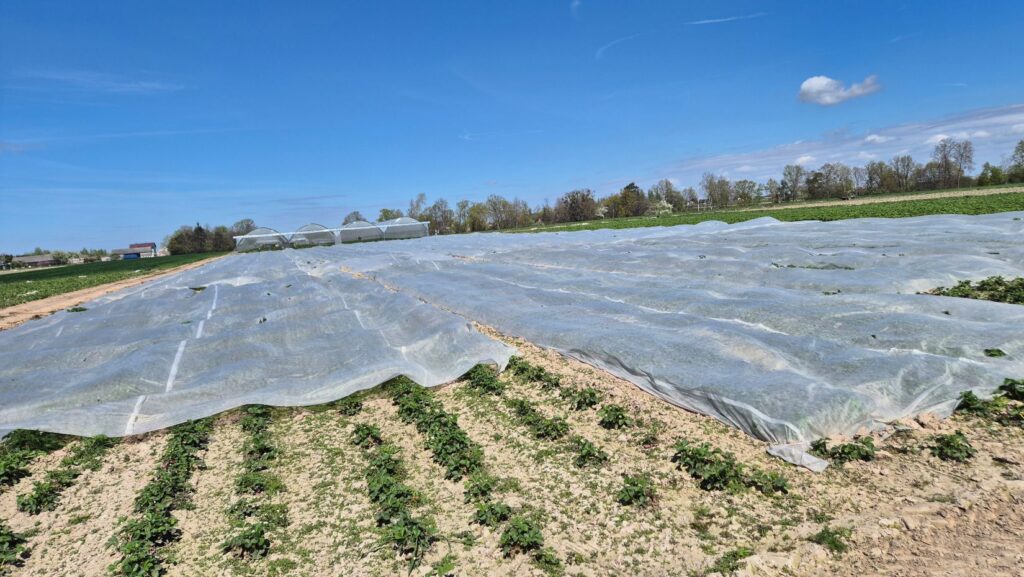 Wiosna przyniosła także poważne straty związane z przymrozkami. Choć okrycia w postaci agrowłókniny i folii perforowanej pomogły ograniczyć uszkodzenia, nie wszędzie udało się ochronić rośliny. W efekcie na wielu plantacjach doszło do częściowego lub całkowitego przemarzniecia, co bezpośrednio przełoży się na niższe plony.