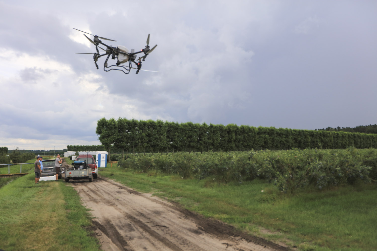 W przypadku dużych i intensywnie prowadzonych plantacji coraz częściej wykorzystuje się drony do wykonywania zabiegów ochronnych. Ich zastosowanie umożliwia precyzyjne rozprowadzenie środka w trudno dostępnych miejscach, skraca czas aplikacji i zwiększa skuteczność zabiegu. Drony stanowią praktyczne wsparcie tam, gdzie konwencjonalny sprzęt ma ograniczony dostęp, a presja szkodników jest wysoka.