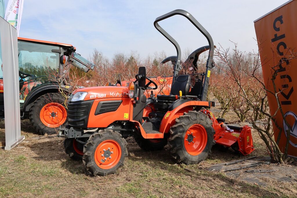 Drugi z zaprezentowany miniciągnik to Kubota B1 181. Jego kluczowe cechy to m.in. napęd na wszystkie koła. Przedni most oparty jest na przekładni stożkowej, co zapewnia doskonały prześwit pod maszyną. Tylny podnośnik zapewnia udźwig od 430 do 615 kg, co pozwala na efektywne współdziałanie z różnorodnymi maszynami. Ciągnik posiada również przyjazną deskę rozdzielczą. Dodatkowo ciągnik wyróżnia się bardzo dobrym wspomaganiem układu kierowniczego.