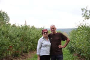 Gabriela i Krzysztof Królowie są właścicielami jednej z najstarszych w Polsce plantacji borówki wysokiej, zlokalizowanej w województwie świętokrzyskim w miejscowości Brzeście, w gminie Bliżyn. Należeli do niewielkiej grupy plantatorów, którzy rozpoczynali uprawę tego gatunku w naszym kraju. Obecnie zarządzają plantacją o powierzchni 1,6 ha, ale stworzyli także drugą, 10-hektarową w Kucębowie, którą obecnie prowadzi ich syn Maciej. Obie mają certyfikaty ekologiczne, a duża część zebranych z nich owoców trafia na eksport. Plantatorów odwiedziłem na początku września ub. roku, by porozmawiać zarówno o trudnych początkach ich działalności, jak i o obecnych wyzwaniach stojących przed producentami ekologicznych borówek.