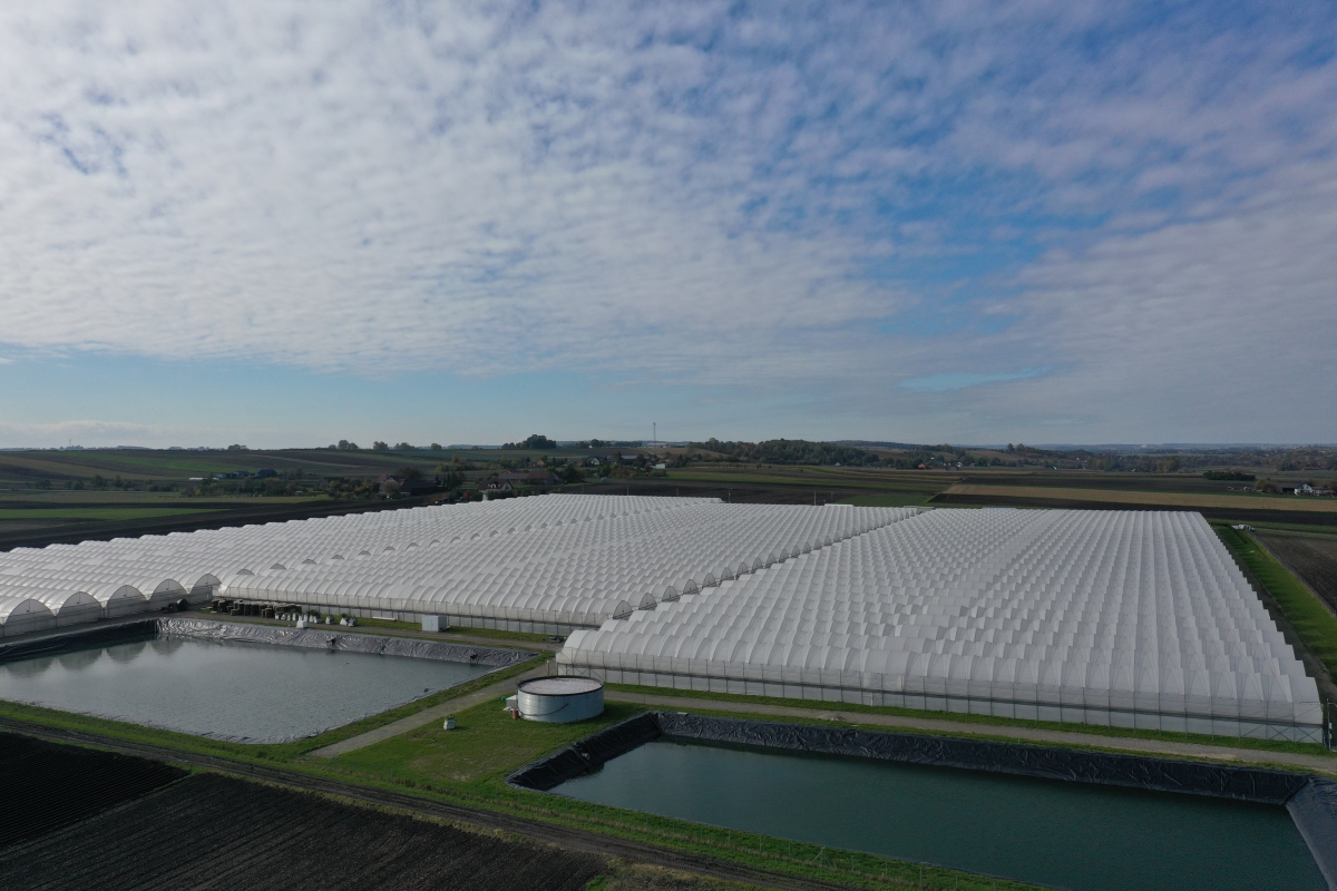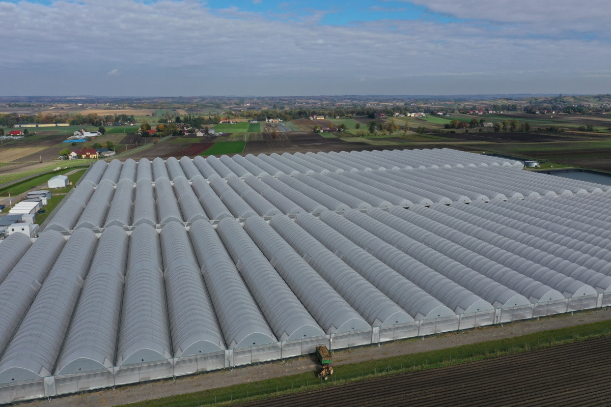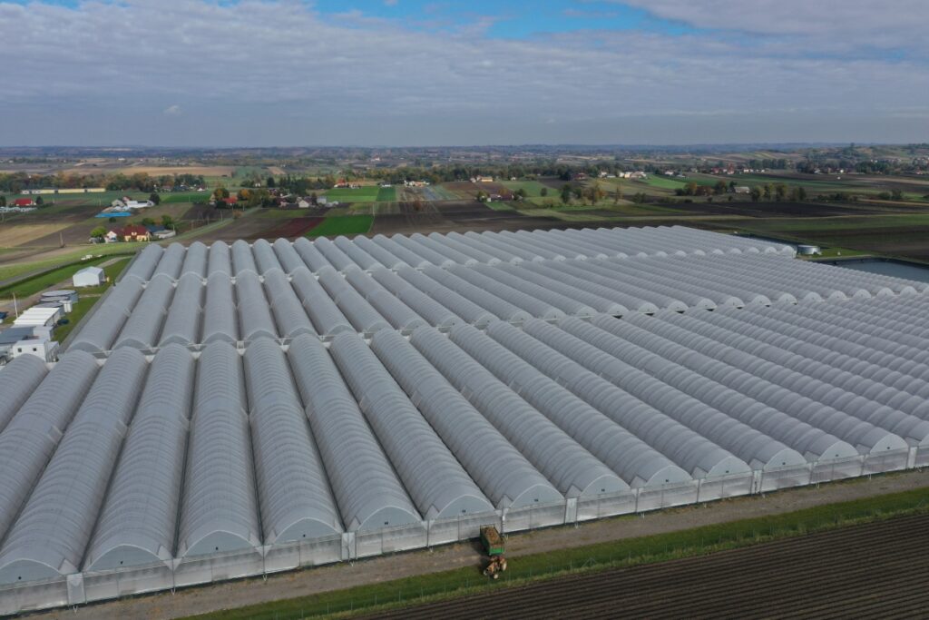 - nietypową konstrukcję tuneli o szerokości 9,60 m, pozwalającą na lepsze wykorzystanie powierzchni i większą liczbę rynien na hektar, a tym samym możliwość posadzenia większej ilości roślin na hektarze,