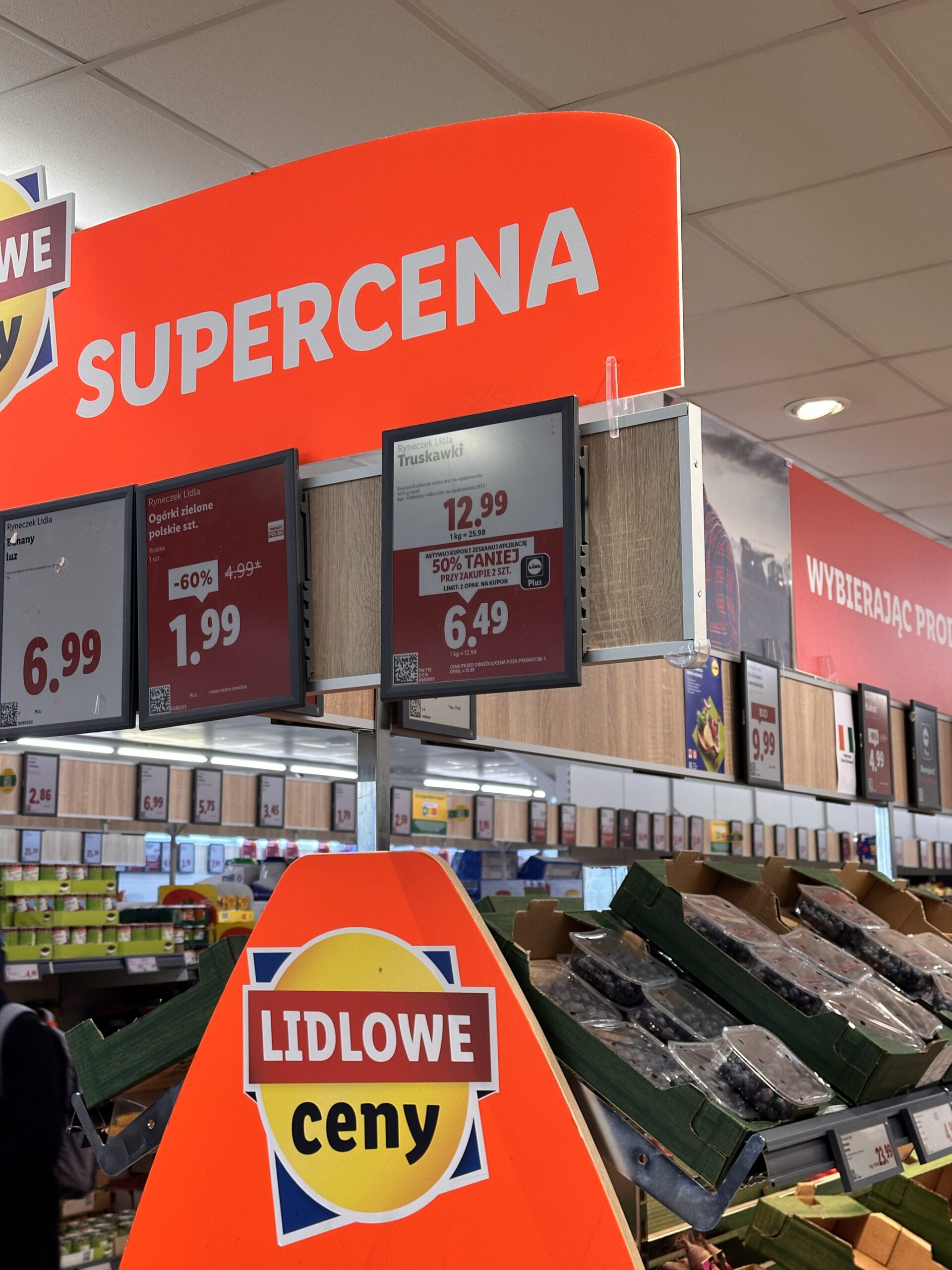 Zdecydowanie lepiej prezentowały się truskawki w sieci Lidl. Cena była podobna – 12,99 zł za 0,5 kg (25,98 zł/kg), jednak przy zakupie dwóch opakowań i posiadaniu aplikacji można było kupić drugie opakowanie za 6,49 zł (12,98 zł/kg). W tym przypadku owoce były świeże i miały całkiem dobry smak.
