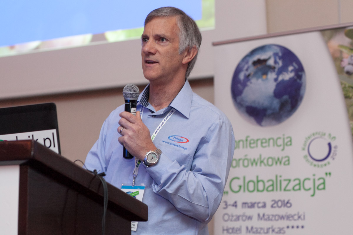 Do globalnego spojrzenia na borówkę amerykańską nawiązywał już pierwszy z prelegentów Andrea Pergher z Fall Creek Farm & Nursery, który przedstawił jak rozwija się uprawa borówki w różnych częściach świata. Okazuje się, że w ciepłym klimacie południowej półkuli coraz chętniej uprawiane są odmiany borówki południowej, a nawet odmiany cechujące się całorocznym owocowaniem i nie wymagające okresu przechłodzenia. Pozwalają one uzyskiwać znacznie wyższe plony niż w przypadku odmian borówki wysokiej uprawianych w Europie. Rozwój upraw borówki amerykańskiej w różnych krajach sprawił, że obecnie mogą być dostępne na rynku przez cały rok, a możliwości ich długiego przechowywania i eksportu, dodatkowo umożliwią wydłużenie okresu podaży i sprzedaży.