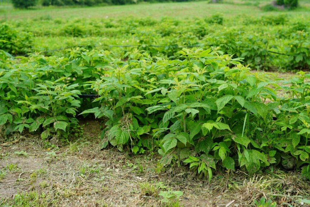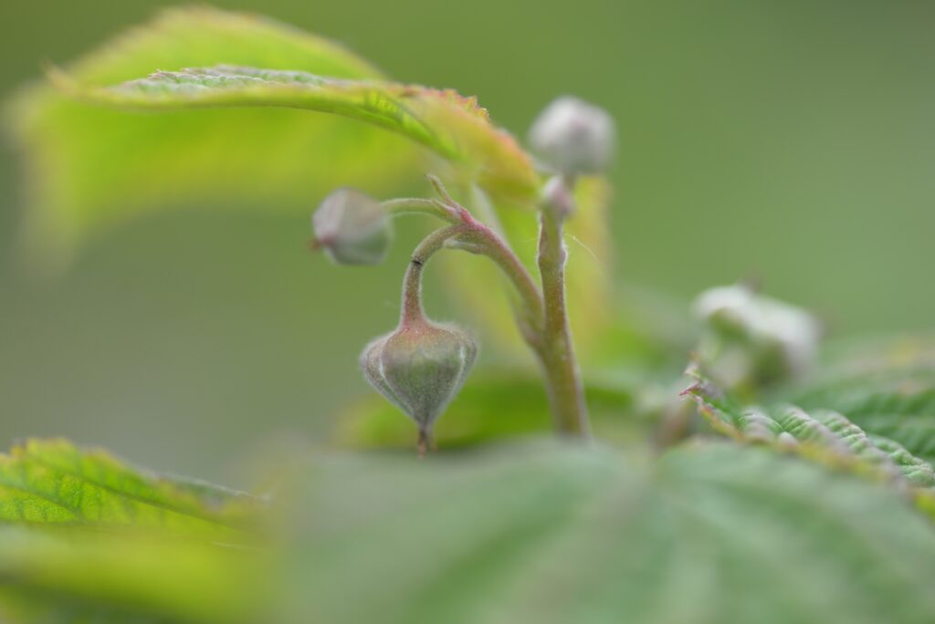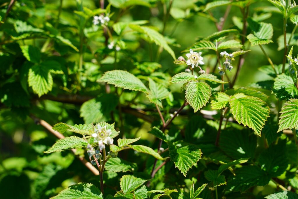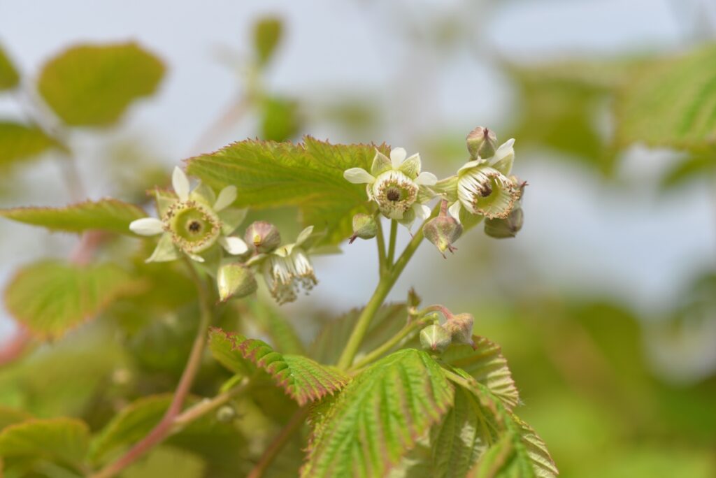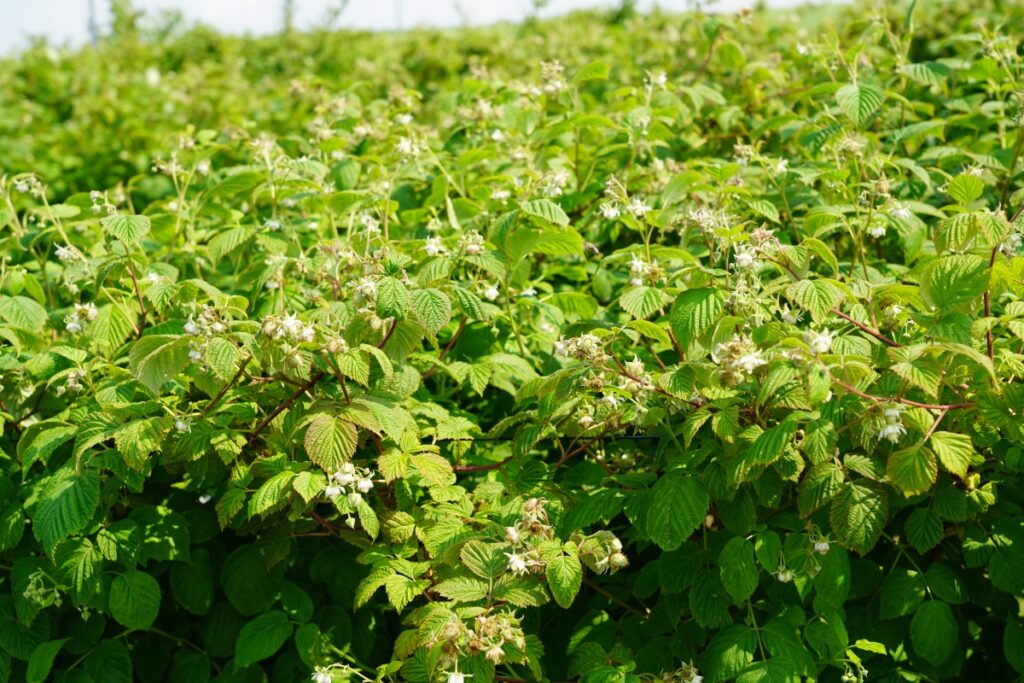 W uprawie polowej maliny letnie znajdują się w fazie kwitnienia. U odmian średnio wczesnych (‘Cascade Harvest’) jest to pełnia kwitnienia (BBCH 65), natomiast u odmian późniejszych (‘Glen Ample’) – początek kwitnienia (BBCH 61, fot. 1 i 2). Lokalnie na niektórych plantacjach po otwarciu kwiatów ukazują się czarne słupki jako efekt uszkodzeń przymrozkowych (fot. 3-4). Takie kwiaty nie wydadzą już owoców. Maliny jesienne znajdują się w fazie BBCH 33-34, gdy pędy osiągają około 30-40% typowej długości (fot. 5 i6).