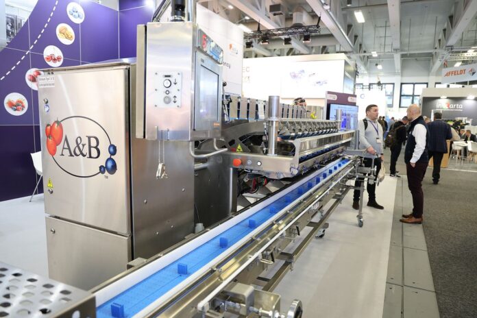 Łatwo dostrzegalną większość stoisk w halach maszynowych zajmowały firmy oferujące urządzenia do sortowania i pakowania.Firma Weco zaprezentowała swoją najnowszą maszynę do sortowania borówki. Jak przekazał Robert Szymański, ma ona wydajność do 4 t/h i jest wykonana w nowej technologii spin sort – borówka na maszynie obraca się, umożliwiając kamerze wykonanie kilkunastu zdjęć, na podstawie których możliwe jest wykrycie wad każdego z owoców. Maszynę charakteryzują także niewielkie wymiary.