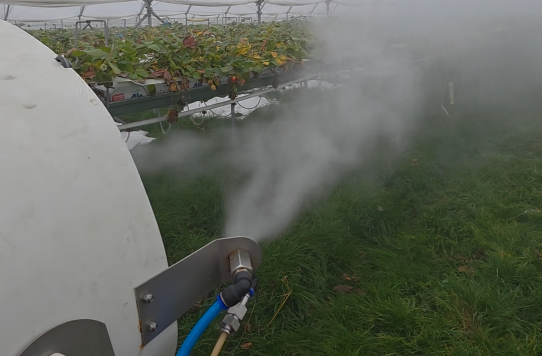 Coraz większym zainteresowaniem cieszy się technologia zamgławiania w tunelach. W porównaniu do tradycyjnych oprysków (800–1000 l/ha w tunelu), zamgławianie pozwala: