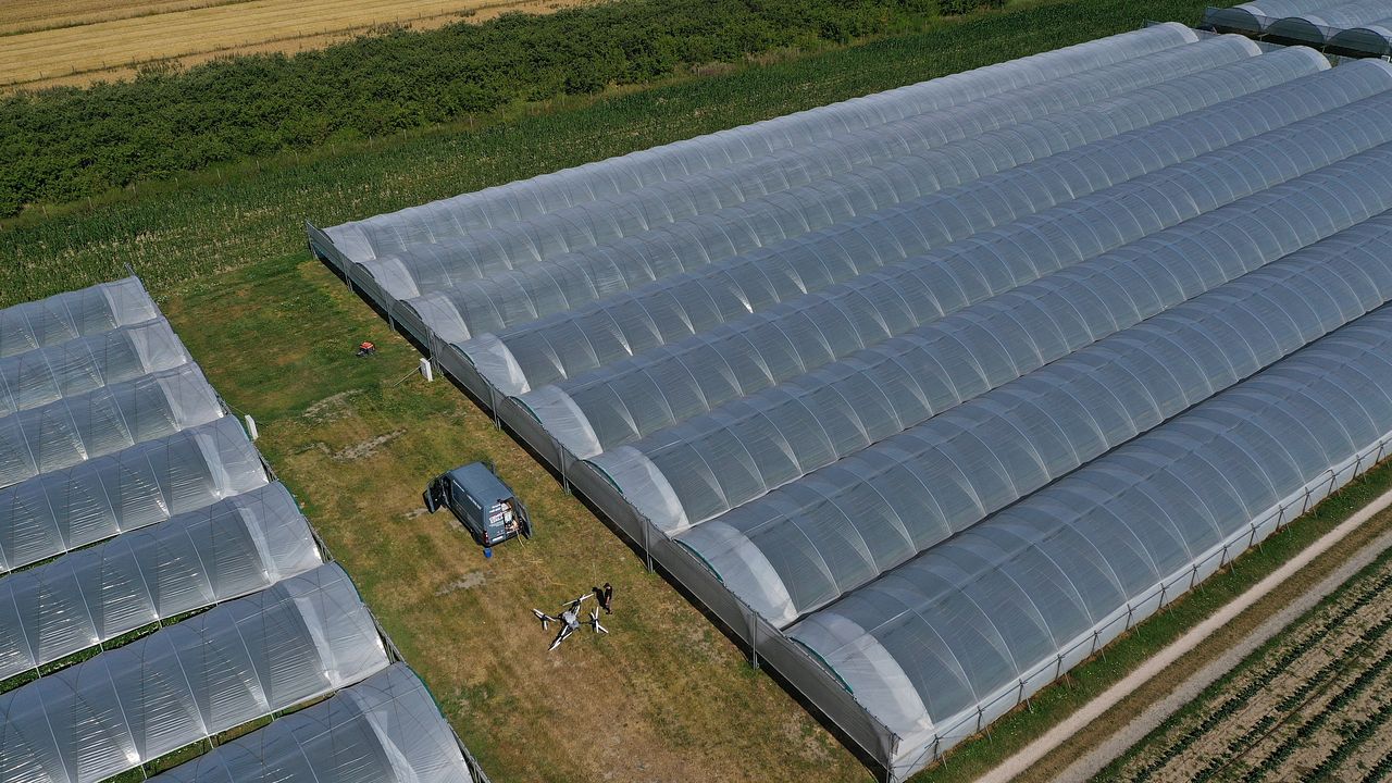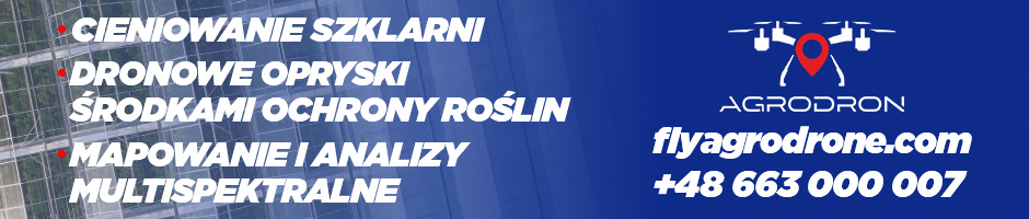 Współczesna uprawa pod osłonami wymaga coraz bardziej zaawansowanych technologii, które wspierają plantatorów w walce z nadmiernym nasłonecznieniem i przegrzewaniem się obiektów. Rozwiązaniem jest cieniowanie szklarni i tuneli foliowych z wykorzystaniem dronów rolniczych. Jednym z produktów do cieniowania jest specjalna farba ReduSol z linii produktów ReduSystem firmy Lumiforte, którą w ofercie ma firma Rol-Eko. Mieliśmy okazję zobaczyć w akcji dron firmy Agrodron, który cieniował folię na tunelach truskawek powtarzających owocowanie właśnie tym preparatem.