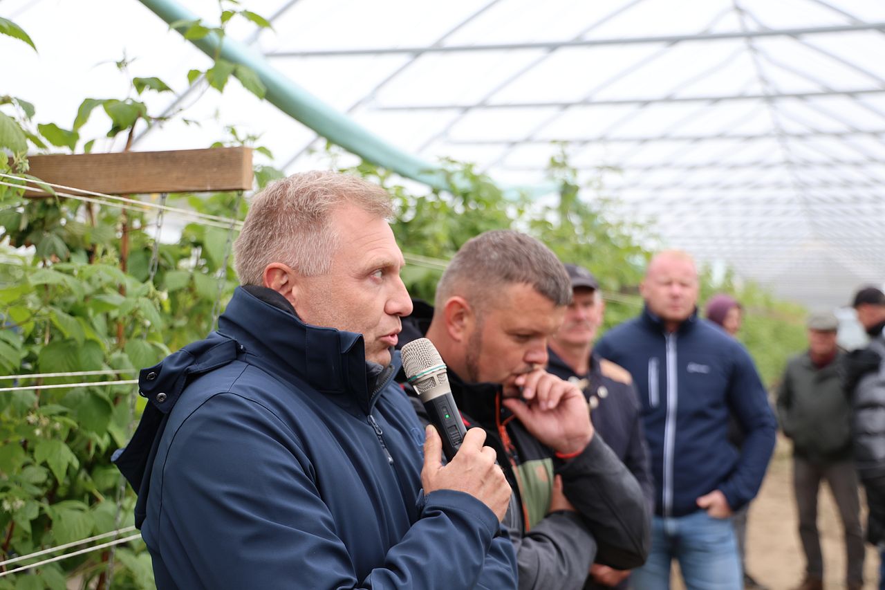 Ważnym aspektem uprawy malin pod osłonami jest odpowiednia ochrona i biostymulacja. Przemysław Kowalewski z firmy Ceres zarekomendował kilka produktów, m.in. mikroelementowy nawóz o niskim pH Biobacter. Po zabiegu ogranicza on możliwość rozwoju patogenów na powierzchni liścia, a także wspiera rozwój korzystnych mikroorganizmów, takich jak bakterie zawarte w preparatach Baly i Active Plus.