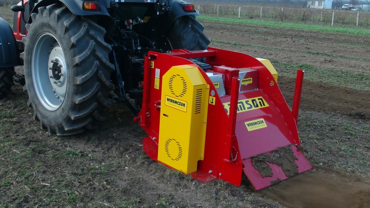 Karczowniki z serii SAMSON przeznaczone do dokładnego rozdrobnienia i zniszczenia karp krzewów i korzeni po wcześniejszym ścięciu części nadziemnej starej plantacji. Korzenie i karpy zostają dobrze rozdrobnione i zmieszane z ziemią. Dzięki precyzyjnej pracy maszyny unika się w późniejszym okresie wyrastania odrostów z fragmentów korzeni.