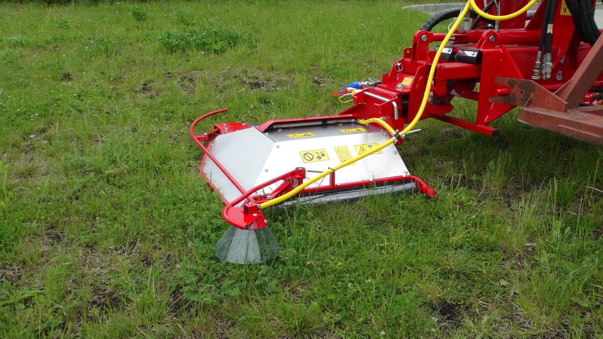 Wymiatarka usuwa liście i gałęzie z pod krzewów tym samym przygotowując plantację przed zastosowaniem belki herbicydowej.