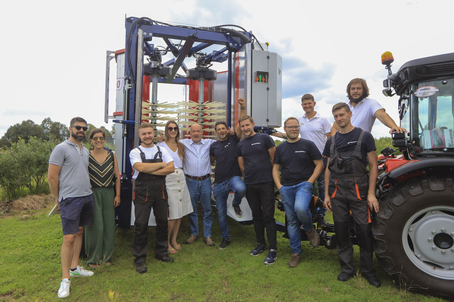 Na plantacji borówki amerykańskiej prowadzonej przez Mirosława Garlińskiego w Dolecku w minionym tygodniu odbył się pokaz mechanicznego zbioru borówki przy użyciu najnowszego modelu kombajnu Jagoda JPS. W czasie pracy maszyna zbierała owoce odmiany 'Sierra’ – cenionej za jędrność, jednolity termin dojrzewania i wysoką jakość deserową.