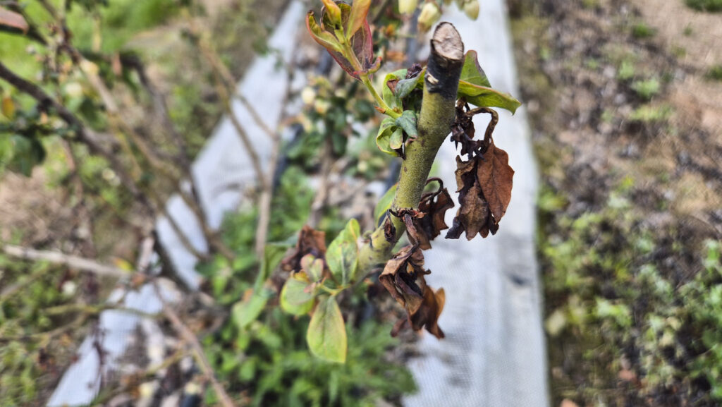 Rak bakteryjny borówki to jedno z największych wyzwań fitosanitarnych ostatnich lat. Sprawcami choroby są bakterie Pseudomonas syringae, które infekują rośliny przez naturalne otwory, uszkodzenia mechaniczne oraz miejsca żerowania owadów. W sprzyjających warunkach infekcja postępuje gwałtownie, obejmując coraz większą powierzchnię pędów. W sezonie 2025 warunki te były wręcz idealne – wysoka wilgotność, niskie temperatury wiosenne oraz długotrwałe przymrozki stworzyły środowisko idealne do rozwoju patogenu.
