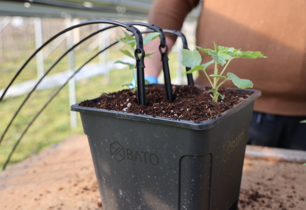 Do sadzenia wybrano sadzonki plug włoskiej odmiany ‘Serena’, W jej przypadku do doniczki warto sadzić dwie rośliny, co przekłada się na wielkość plonu. W doniczce z dwoma roślinami należy umieścić minimum trzy kapilary podające pożywkę.