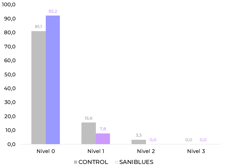 - Dzięki zastosowaniu preparatu SaniBlues uzyskano o 11,1% więcej owoców w najlepszym możliwym stanie handlowym (poziom 0).