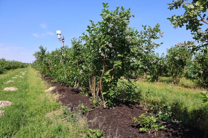 Na plantacji towarowej borówki odmiany ‘Bluecrop’, prowadzonej przez dr. Pawła Krawca, prowadzona się m.in. ocena efektów stosowania organicznej ściółki Carbomat, dostarczonej przez firmę Carbohort. Ściółka w tej części gospodarstwa została rozłożona w poprzednim sezonie. Ocena, którą gospodarz przeprowadził wspólnie z dr. Radosławem Łaźnym z firmy Plon Expert Doradztwo Agronomiczne, została przeprowadzona po zimie i w trakcie intensywnego wzrostu roślin, co pozwoliło na sformułowanie ciekawych wniosków praktycznych.