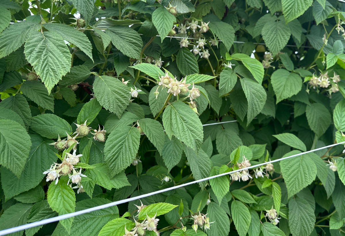 W kwaterze malin letnich w dniu 22 maja, a konkretnie przy odmianie ‘Glen More’, obserwujemy pełnię kwitnienia. Zbiór owoców planowany jest tutaj w pierwszych dniach czerwca, choć przy sprzyjających warunkach może rozpocząć się nawet wcześniej. Na tym etapie uprawy kluczowe staje się odpowiednie zarządzanie ochroną roślin oraz wspomaganie zapylania — szczególnie w kontekście zmiennej pogody i uprawy tunelowej.