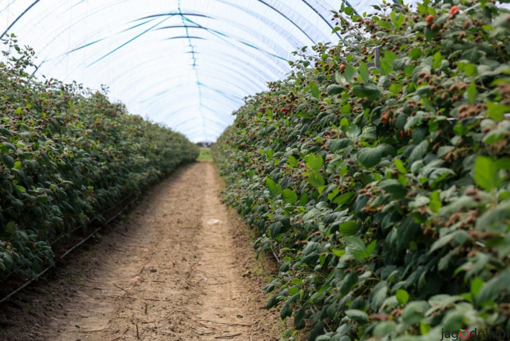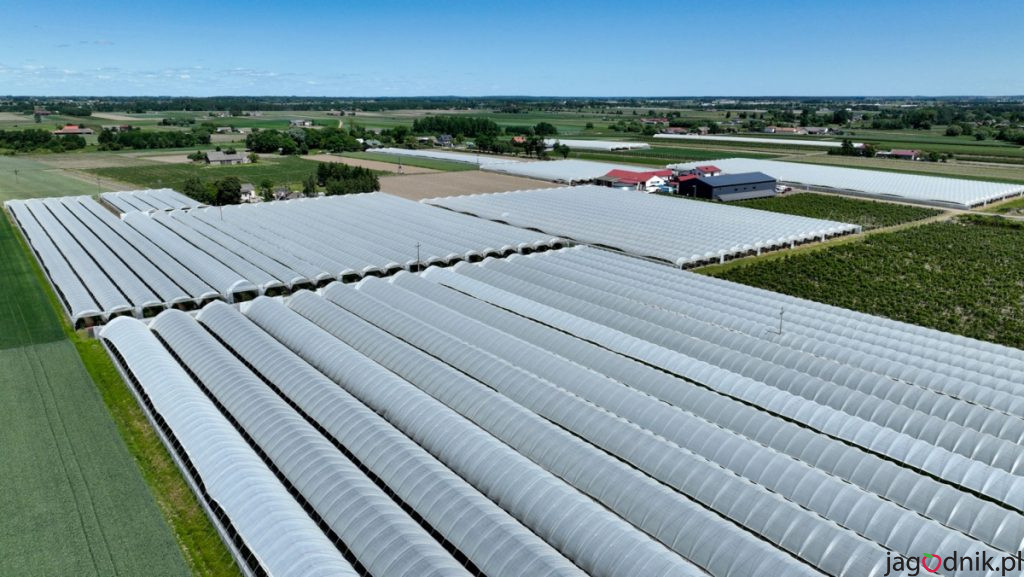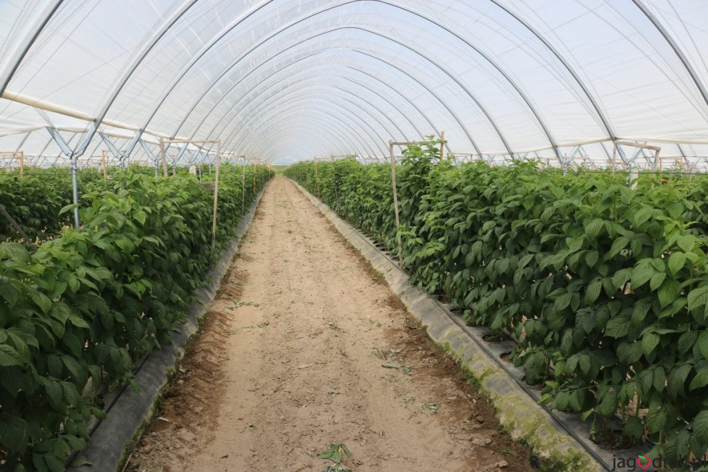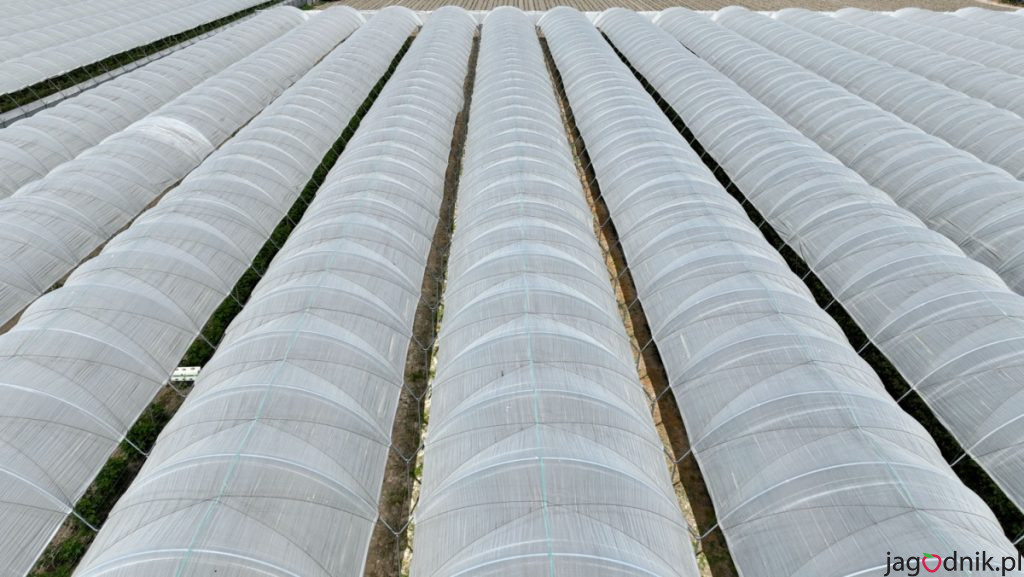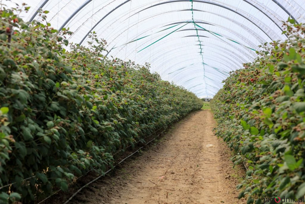 W tym gospodarstwie już w 2014 roku maliny uprawiano z bardzo dobrymi efektami w tunelach. Od tego czasu struktura uprawianych odmian oraz areał upraw realizowanych w tunelach uległ znacznemu powiększeniu. Aktualnie maliny w zblokowanych tunelach serii 4 oraz najnowszych wysokich zblokowanych konstrukcjach z rur owalnych (wszystkie z firmy Haygrove) uprawia się tutaj już na ponad 7 ha. W planach na ten rok jest dalsza rozbudowa gospodarstwa o konstrukcje tunelowe.