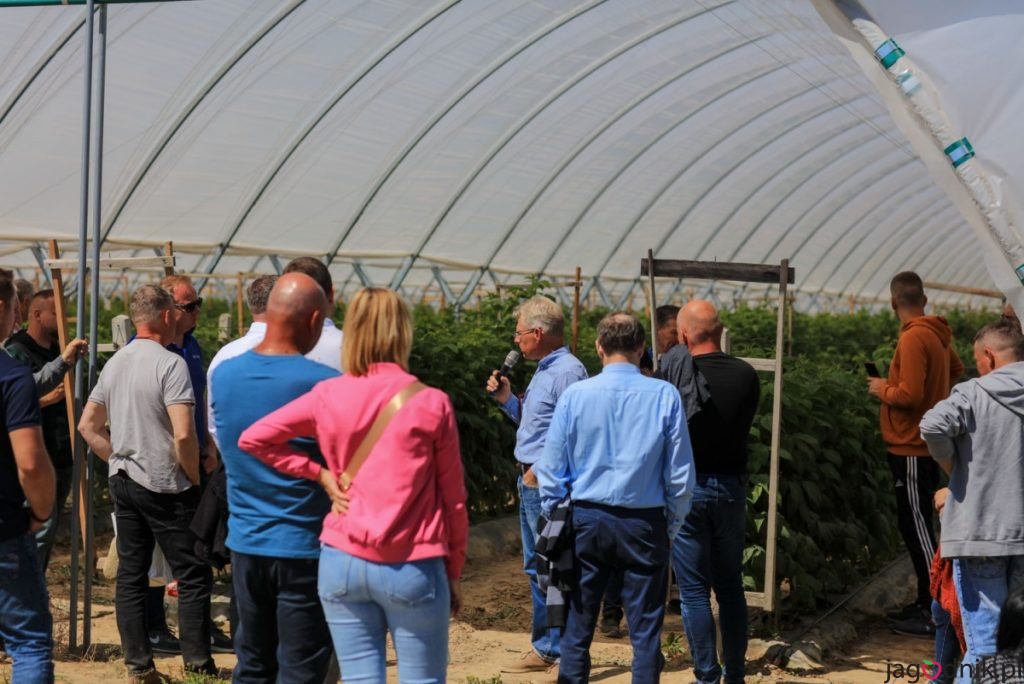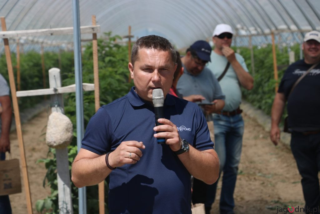 Z kolei Janusz Góra z tego przedsiębiorstwa omówił wysokiej konstrukcje tunelowe, które w tym gospodarstwie przeznaczone są aktualnie do uprawy odmiany ‘Enrosadira’ na zbiór z pędów tegorocznych. Wizyta w tej części gospodarstwa była także doskonałą okazją do omówienia zabiegów agrotechnicznych niezbędnych do spełnienia w uprawie tej odmiany, które omówili dr Paweł Krawiec (Horti Team), Kamil Szybczyński (Royal Brinkman) oraz Hubert Tabor (Yara Poland).