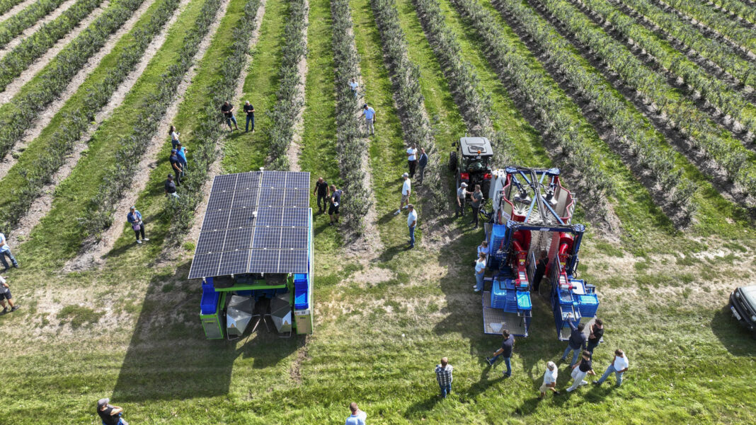 Co ważne, pełne skrzynki owoców są magazynowane na pokładzie kombajnu i rozładowywane dopiero po zakończeniu cyklu zbioru. Dzięki tym udogodnieniom do obsługi potrzebny jest tylko jeden operator, którego zadaniem jest nadzór nad pracą maszyny.