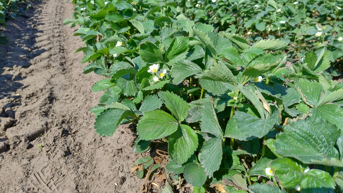 Z każdym słonecznym dniem na truskawkowych plantacjach przybywa kwiatów. Na odmianach wczesnych można znaleźć już całkiem sporo kwiatów.