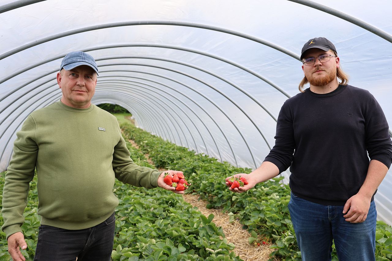 Pan Jacek Czekaj obecnie produkuje truskawki na przyspieszony zbiór – odmianę ‘Flair’ oraz powtarzające owocowanie – odmianę ‘Hademar’. W momencie wizyty w gospodarstwie zbiór odmiany ‘Flair’ powoli dobiegał końca. Więcej o gospodarstwie pana Jacka przeczytacie w Jagodniku 6/2025.