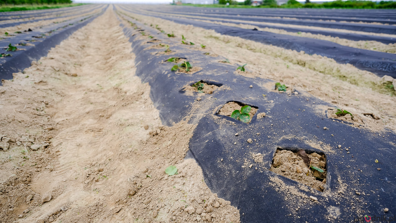 To jedna z najczęstszych przyczyn problemów. Objawami zbyt głębokiego sadzenia są zamieranie roślin po 2-3 tygodniach, czernienie starych korzeni, czy widoczne na roślinie próby wybicia nowych korzeni. Zagłębienie sadzonek na 4–5 cm w grunt często kończy się ich „wypadnięciem” z plantacji. Stożek wzrostu powinien znajdować się na poziomie powierzchni gleby. Warto również zwrócić w tym miejscu uwagę na właściwą pracę glebogryzarką lub pielnikiem – przy złych ustawieniach tych maszyn może dojść do zasypywania truskawek ziemią, co również negatywnie odbije się na ich wzroście.