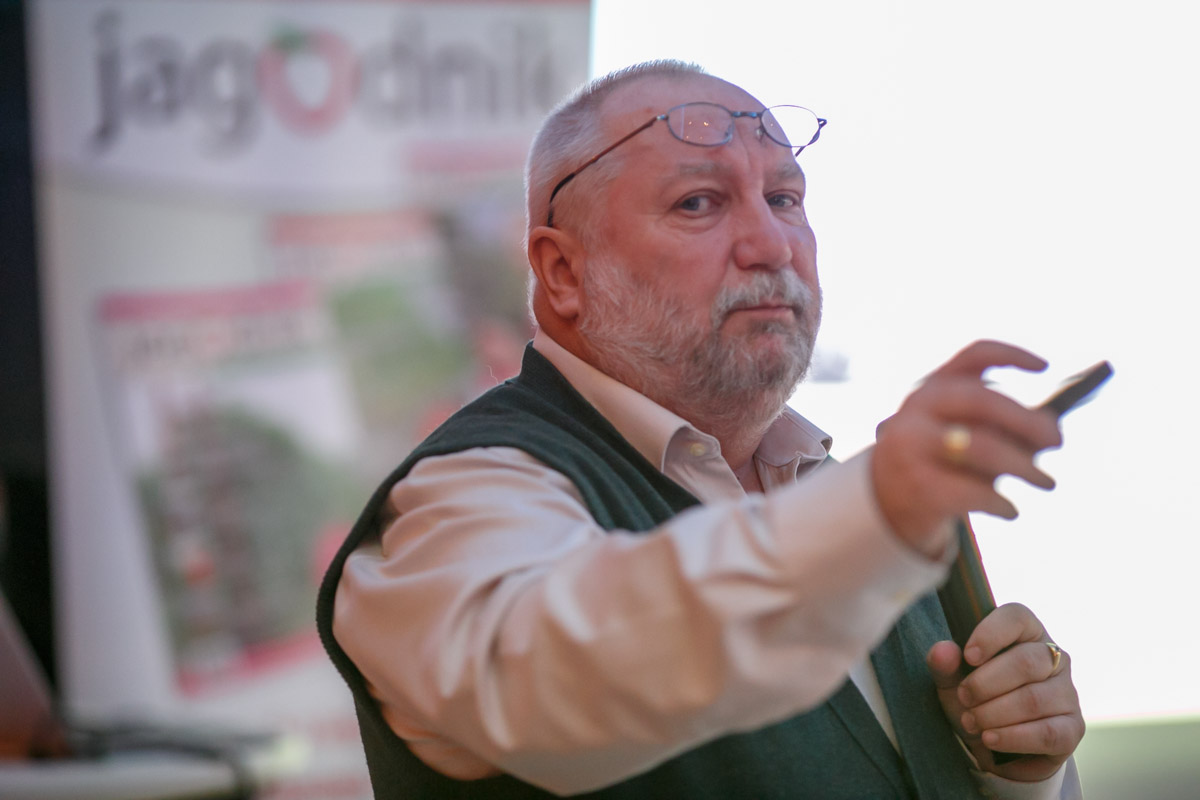 Jarosław Barszczewski z firmy Yara mówiąc o nawożeniu truskawek, przypomniał o wymaganiach nawozowych jakie ma ten gatunek. Rośliny truskawki z 1 ha w ciągu sezonu pobierają około 120 kg N, 30 kg P, 180 kg K i około 80 kg Ca. Proponowane standardowe programy nawozowe, nie są jednak idealnym rozwiązaniem i zapewniają około 70% optymalnego odżywienie roślin. Najlepszym rozwiązaniem jest przygotowanie indywidualnych programów nawozowych w oparciu o analizę gleby. Nawożenie truskawek ma wpływać nie tylko na plon, ale również na jakość owoców. Pod tym względem, prelegent podkreślał potrzebę nawożenia wapniem, który wpływa na jędrność i trwałość owoców, ale również potasem, azotem i krzemem. Zaniedbywanym pierwiastkiem jest też siarka, której zaczyna brakować na wielu plantacjach.