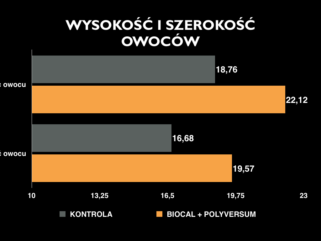 Zastosowanie w tym czasie tego produktu w uprawie czarnej porzeczki poprawiło zawiązanie owoców w gronie oraz parametry jakościowe owoców. W uprawie malin produkt ten stosowany jest na początku kwitnienia i kolejny raz pod koniec kwitnienia. Zabiegi tym produktem poleca się wykonywać co około 10-14 dni. Biocal w dotychczas szczegółowo badano w polowej uprawie malin odmiany jesiennej, gdzie dodatkowo stosowano Polyversum oraz nawozy na bazie aminokwasów. Zastosowanie tych produktów pozytywnie wpłynęło na zawartość ekstraktu oraz trwałość malin w obrocie.